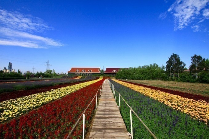 这里种了千亩花海,还有抖音网红的彩虹滑滑梯,基础门票是50块,各种骑马、滑梯、骑骆驼等项目加起来的套票是200块。