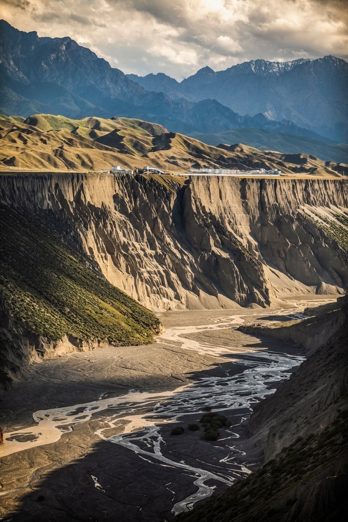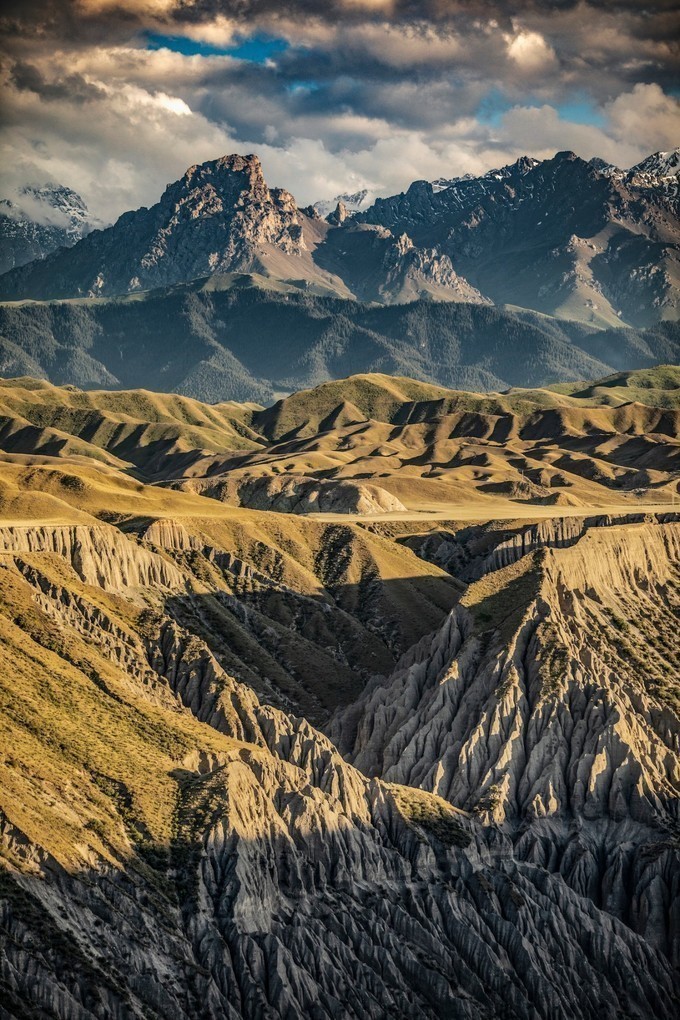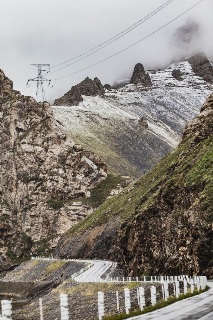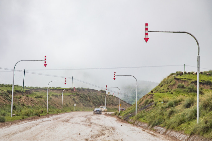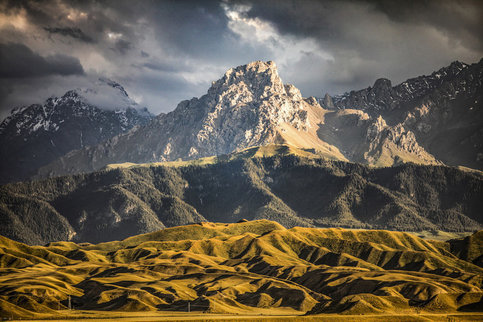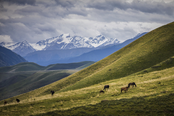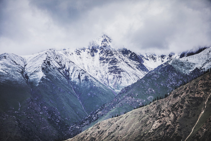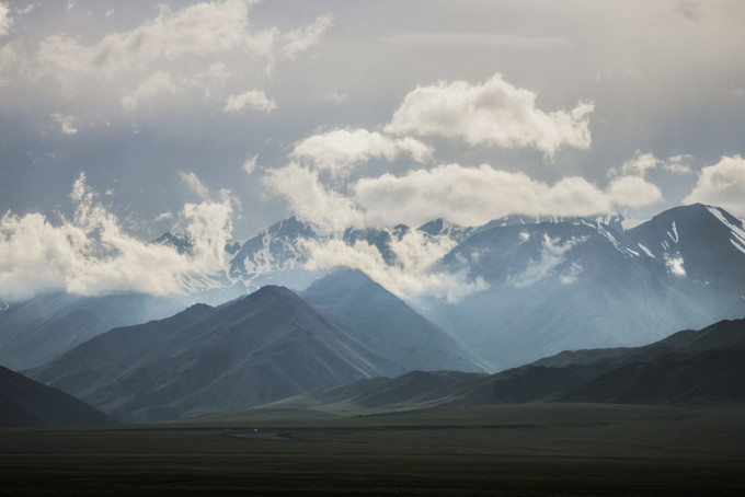 去往琼库什台的路虽然曲折但是非常美丽,一直有大大小小的雪山和垂直森林草原在身边。