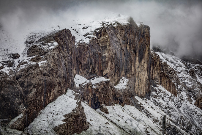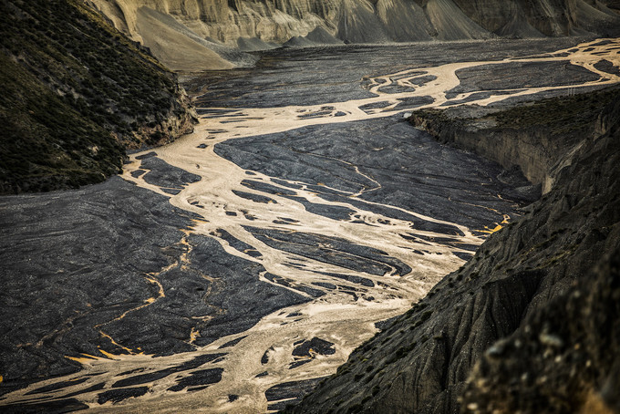 用广角拍摄整个峡谷全景,用长焦拍摄沟壑和山体的细节,沟壑嶙峋的山体跟背后的石头山形成非常丰富的层次。