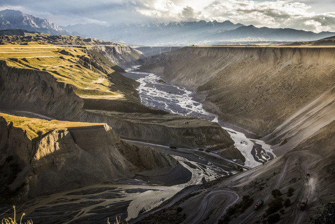 峡谷的底下似乎是个矿山,一直有大货车在进进出出,所以会扬起尘土,在阳光下形成丁达尔现象,也算是红山大峡谷非常独特的风景了。