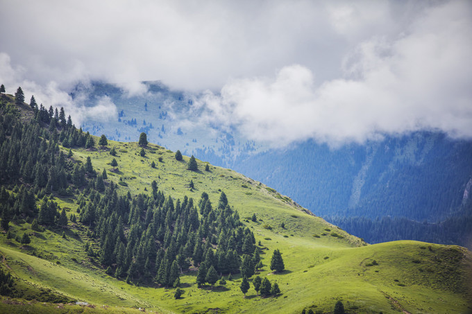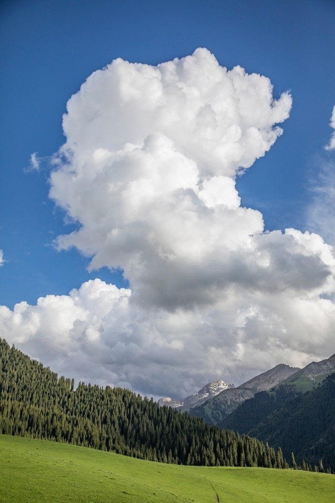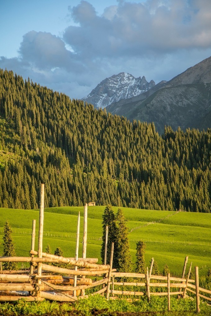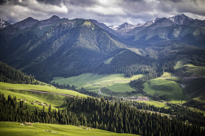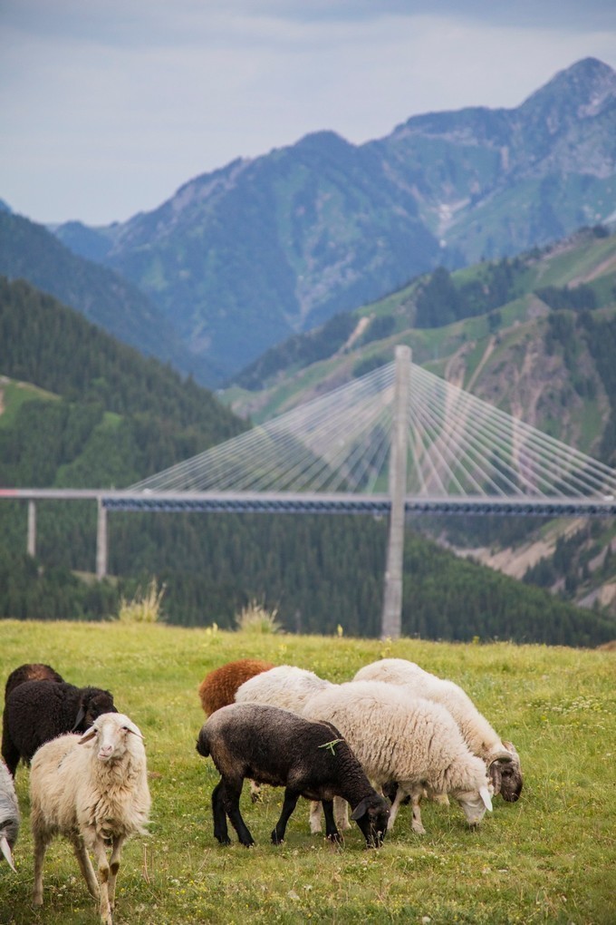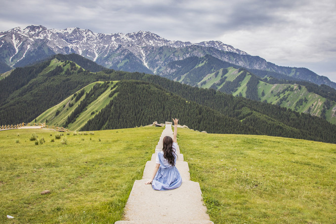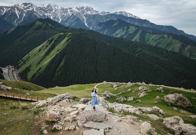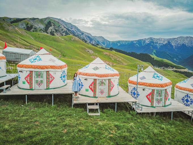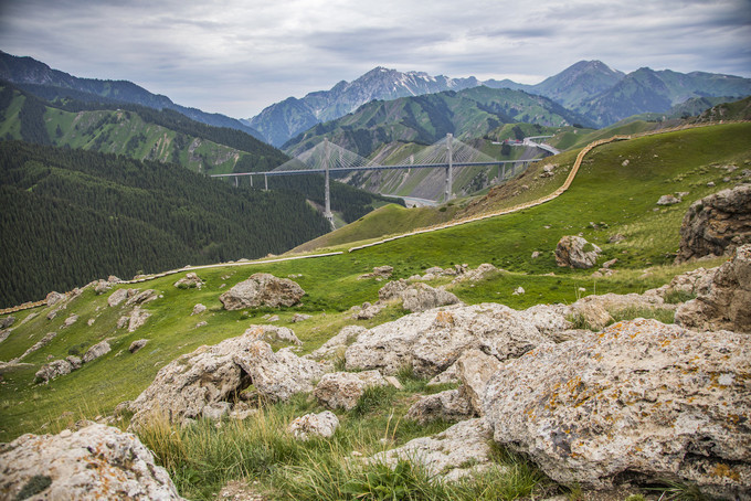 果子沟是 伊犁 地区的天然门户,这里的垂直森林、雪山和怪石交相辉映,虽然今天天气不算很好,但草地和森林多种层次的绿依然让这里美得像仙境,传说中的 新疆 第一高桥就镶嵌在果子沟中。今晚住在果子沟观景台毡房,可以说是最佳观景地了,赶紧拍起来~