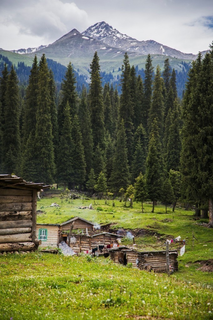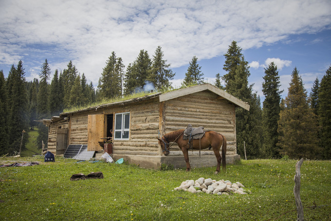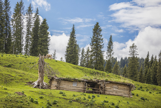 在琼库什台全都是传统的木质房子,木楞结构村落里蕴含浓郁哈萨克族人文,记录牧民日常起居场景。晚上可以住在这样的小房子里,晚上出来看星辰满天。