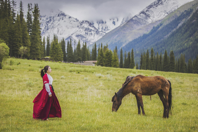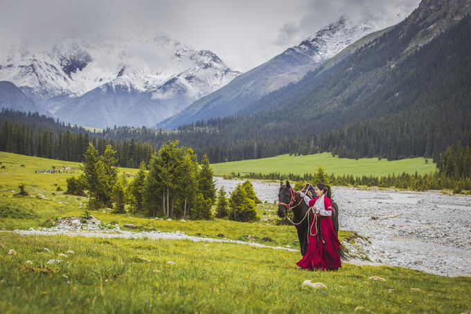 这里另一个非常棒的地方是小村子旁边的小溪,非常美好,在潺潺的流水中,抬头一看就有一匹骏马掠过,是出大片的好地方哦~