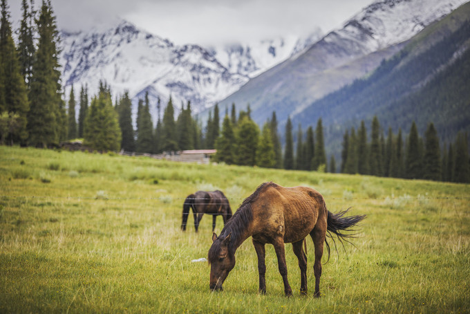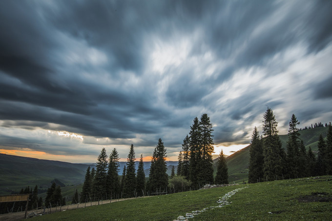 在整个行程中,我们有两个地方是住在大山里的,一个是果子沟一个是琼库什台,这也是我唯二可能在晚上出来拍星星,早上起来拍日出的地方,只可惜今天在日落后起了浓浓的乌云,星空和日出都泡汤了,只能指望之后的琼库什台了!