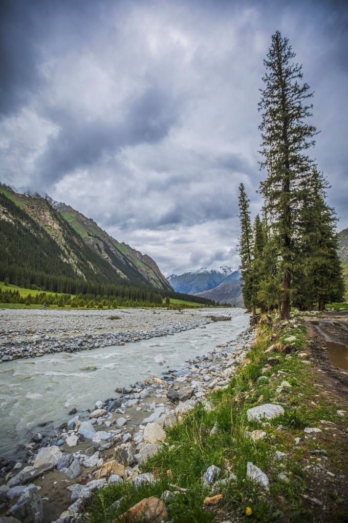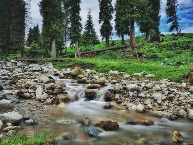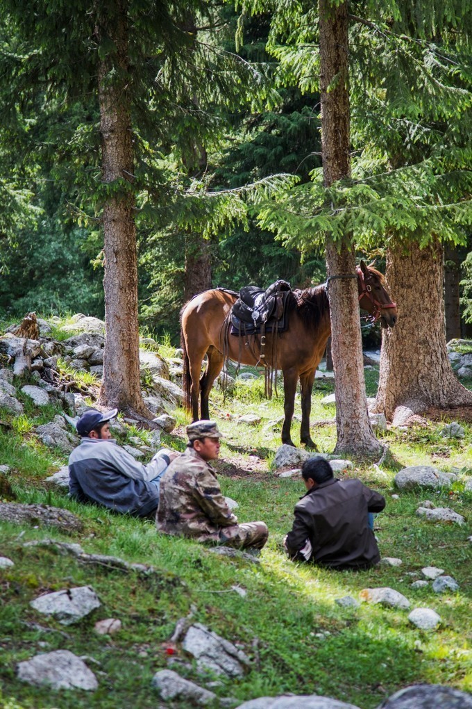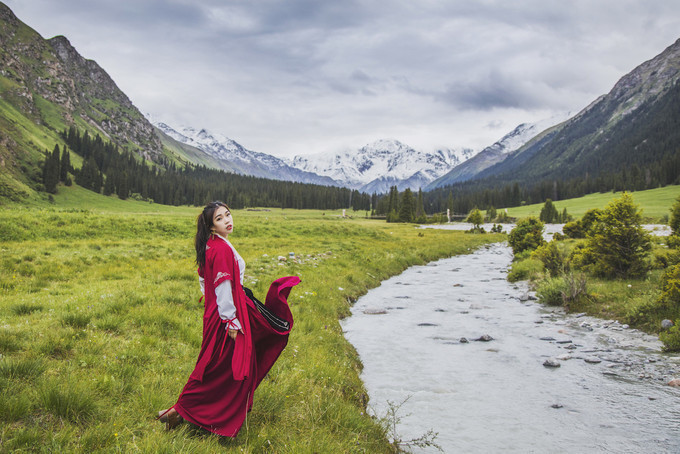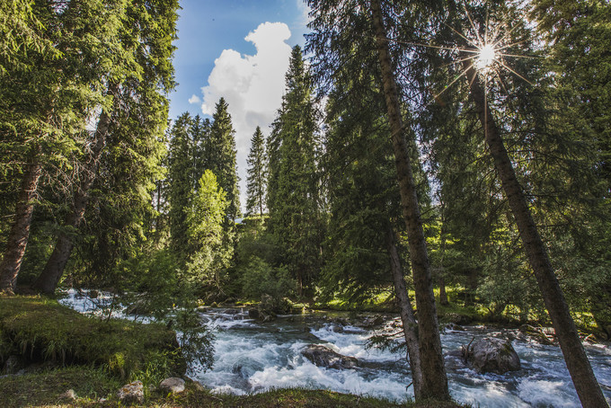 在接近了琼库什台的森林后,开始出现杉树和流水,这跟之前的草原地貌又完全不一样啦。