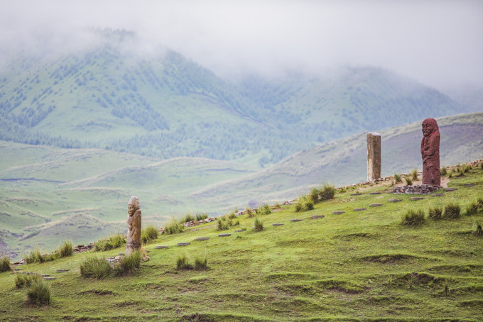 在去 特克斯 的路上,会看到这些草原石人,特别好玩,可惜因为我们到的这天下着雨(从昨天开始就下雨不停哭哭),就在旁边的停车场按了一张就走了。